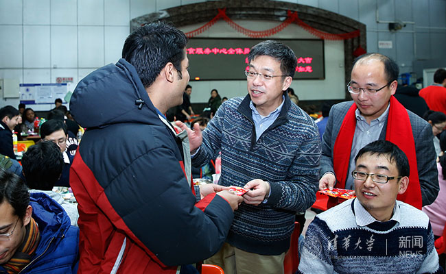 邱勇向全校师生员工问候新春。记者 张宇 摄