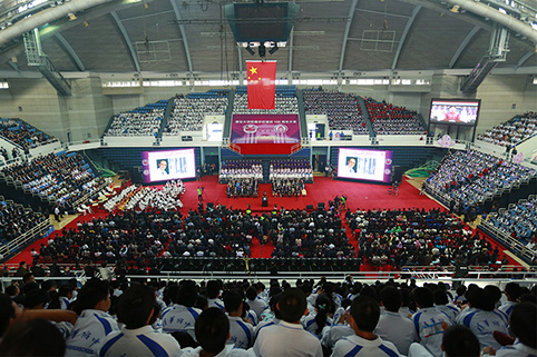 清华附中高三年级学生丛蓉代表在校学生发言说,当守望的时钟指向10月17日,身处世界各地,肩负社会使命的师长不远千万里、奔赴清华园;当我们共同唱响“西山脚下,圆明园旁”,回忆与母校一起走过的百年辉煌时,怎会不因激动而流泪呢?“自强不息 厚德载物”将永远镌刻在我们心中,一代又一代的学子传承着清华精神。