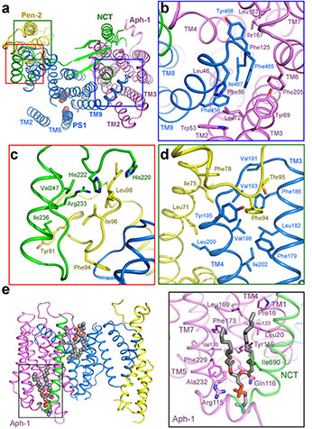 2014年9月,施一公研究组在《美国科学院院刊》(PNAS)发表文章,报道了其中一个亚基Nicastrin同源蛋白胞外结构域的高分辨率晶体结构,推测了Nicastrin在底物招募过程中可能的机制,并且根据同源性构建了人源Nicastrin 胞外结构域的结构,结合该结构与此前解析的PSH晶体结构和4.5埃分辨率电镜结构,他们在γ-分泌酶跨膜区辨认出了PS1,并进一步推测了该复合物近20个跨膜螺旋的组装模式,但该结论仍需高分辨率的结构验证(Xie et al, PNAS);