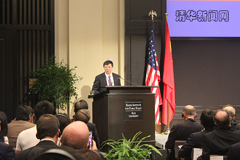 在回应性演讲的最后,邱勇说:“今天我很高兴华盛顿大学Cauce校长也在场,我们在西雅图见面的时候,惊奇地发现有很多共同点。我们分享共同的教育理念,甚至在很多细节上都是一样的。比如,两所大学都把紫色作为校色。Cauce校长对我讲,‘Our strategic partnership is pre-determined by God’,翻译成中文是‘我们的战略合作关系是命中注定的’。今天,我和Cauce校长对两校合作的前景充满信心。我也相信并期盼,在座的中美大学校长对刘延东副总理为我们描述的中美两国大学合作的美好前景充满信心,因为这都是‘命中注定的’”。邱勇的演讲获得全场热烈掌声。