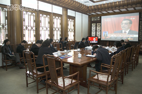 清华师生代表集中收看政府工作报告。实习记者 张 宇