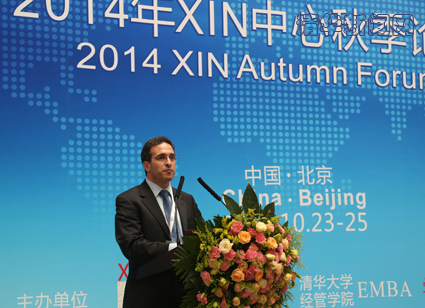 陈吉宁在论坛上致辞。他说,创新是综合国力的集中体现,是社会进步的动力源泉,也是大学发展的重要内涵。中国经济的蓬勃发展和巨大的市场潜力,给两校、两国的合作提供了广阔平台。创新需要形成系统,XIN中心是一个很好的创新实验,把以色列的创新经验和清华的学术资源相结合,在基础学科、能源环境、生命科学、医药、新材料、通信智能等领域进行创新技术的培育和孵化。中国经济的蓬勃发展和巨大的市场潜力,给两校、两国的合作提供了广阔平台。“XIN”意味着勇于跳出既有思维模式,培育创新机制,紧密结合市场,分工协作,整合资源,实现各自创新要素的聚变。相信在XIN中心团队和支持者的共同努力下,在这个平台上必将培育出一批优秀的科学家、企业家和成功的投资人。他们的成果不仅能够使中以两国受益,更将影响整个世界,造福全人类。