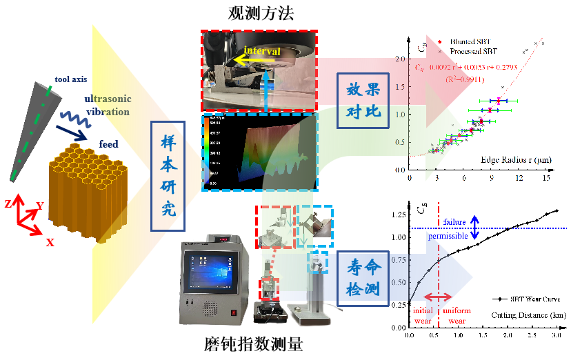 清华新闻网7月4日电 近期,精品无码久久久久久久久_国产精品一区二区三区四区五区_欧美亚洲国产激情一区二区_午夜精品久久久久久久久久久久_亚洲欧洲中文日韩久久AV乱码_91精品欧美一区二区三区_久久精品一区二区免费播放_日韩高清大片永久免费入口_久久国产欧美日韩精品免费_欧美一区二区三区久久综合_国产精品天天狠天天看深圳国际研究生院先进制造团队智能制造与精密加工实验室在特种刀具磨损研究领域取得了系列进展。首先,在高性能耐磨刀具开发方面,提出了不同于传统刀具通过增强硬度提高耐磨性能的新思路。针对芳纶纸蜂窝复合材料超声加工薄刃刀具的结构特点,改为通过增强刀具材料韧性的方式提高刀具寿命,并具体针对该类特种圆盘刀进行了深入研究,开发了加工过程保持性能好、切削力小、加工表面质量优良的圆盘刀。这项工作采取优化热处理方案对材料进行了增韧改性,测试了热处理之后材料在硬度、韧性、耐磨性上的表现,获得了材料静态测试性能结果。接下来,采用上述材料制备刀具并进行超声加工实验,对比了在刀具全生命周期刀具的切削力、表面加工质量的演变规律。该研究发现,有别于传统切削刀具的性质,材料韧性对于超声加工圆盘刀来说是最重要的影响因素,不仅适用于冲击载荷场景,也能够提升刀具的可加工性和初始的锋利程度,增韧刀具在整个生命周期具有较好的加工性能。