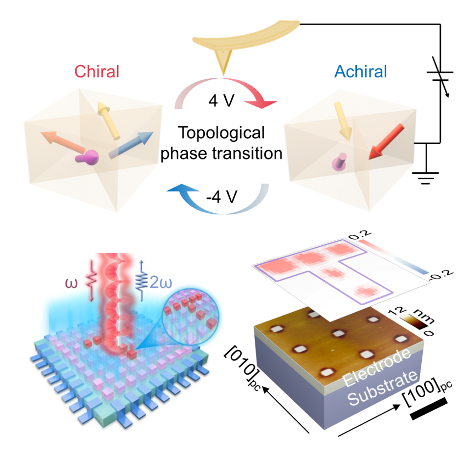 清华新闻网8月20日电 近年来,手性科学的迅速发展不仅推动了催化、药物开发等生物化工领域的技术进步,还因其具备的光学活性而在光电探测器、发光二极管、液晶显示等光电子学领域展现出广阔的应用前景。值得一提的是,光学手性的电场调控由于其新颖的功能特性和多外场的协同耦合长期以来受到广泛关注。手性铁电材料由于兼具手性光学特性和铁电性,被视为极具潜力的电控光学手性材料,在集成光电子学及信息存储等领域展现出了广阔的应用前景。然而,与具有手性碳原子中心的有机铁电材料相比,如何在无机铁电材料中引入手性是铁电领域长期以来所面临的挑战。