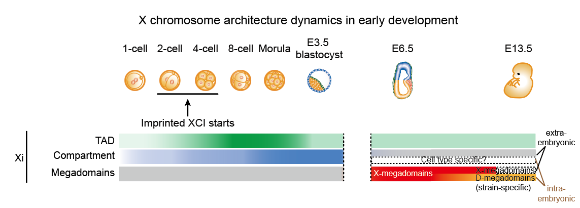 图1.X染色体高级结构在小鼠胚胎发育过程中的动态变化