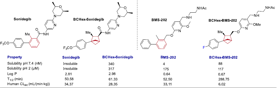 清华新闻网12月13日电 在药物化学研究中,根据“逃离平面”概念,提高sp³杂化碳的比例和手性碳的数目可以增加候选药物分子的复杂性,从而提高其临床成功率;因此三维(3D)、饱和的、桥环类化合物在药物化学中受到广泛关注,其中BCHs能够作为多种不同取代苯基的生物电子等排体;然而,目前手性BCHs的合成方法尚未得到充分研究,且手性BCHs替代生物活性分子(或小分子药物)中的苯环及其生物活性研究还未见文献报道(图1)。