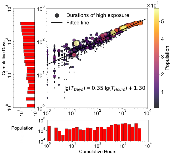 WHO推荐的日均和时均UFPs暴露限值并非可互换。研究发现,超标天数(每日平均PNC超标的天数)与超标小时数(每小时PNC超标的小时数)之间存在显著的非线性关系,说明简单地使用某一个暴露限值无法全面评估UFPs的健康安全风险。这一发现对UFPs空气质量标准的制定具有重要意义。