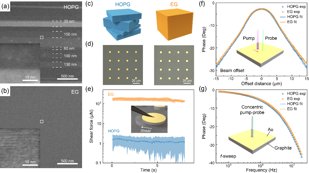 图1.HOPG和EG的结构、力学和初步热学表征
