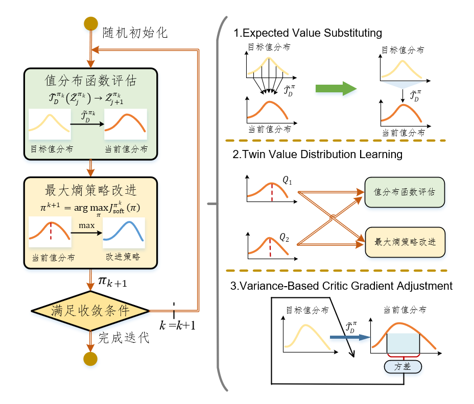 强化学习在具身智能控制(如自动驾驶、机器人等)任务中展现出巨大潜力,但主流方法长期面临“值函数过估计”难题。简而言之,贝尔曼方程的迭代求解过程中,因为最大化算子的存在,易造成值函数(即性能衡量指标)误差向单一方向持续累积,导致策略学习严重偏离最优解。该问题最早在1993年由斯坦福大学的学者从算法实验中发现,进入深度强化学习阶段之后,因神经网络拟合速度慢以及固有训练误差的存在,导致过估计问题更加严峻。自2010年开始,Deepmind、麦吉尔大学的科学家先后提出了Double Q-learning、Clipped Double-Q等一系列措施,尝试使用双函数互相矫正的思想解决单一函数的计算误差。这些措施虽然在一定程度上抑制了值函数的过估计问题,但是对于高维非线性任务,仍面临值函数学习不准、策略性能低下的瓶颈难题。