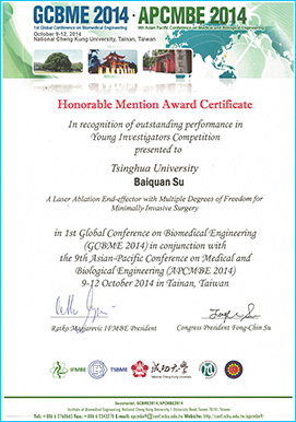 清华新闻网10月17日电 10月11日,在台湾成功大学举办的第一届全球生物医学工程会议暨第九届亚太地区医学生物工程学术会议(GCBME2014- APCMBE 2014)上,精品无码久久久久久久久_国产精品一区二区三区四区五区_欧美亚洲国产激情一区二区_午夜精品久久久久久久久久久久_亚洲欧洲中文日韩久久AV乱码_91精品欧美一区二区三区_久久精品一区二区免费播放_日韩高清大片永久免费入口_久久国产欧美日韩精品免费_欧美一区二区三区久久综合_国产精品天天狠天天看医学院生物医学工程系博士后苏柏泉博士发表的论文“A Laser Ablation End-Effector with Multiple Degrees of Freedom for Minimally Invasive Surgery”(用于微创手术的多自由度激光烧蚀末端操作器)获得Young Investigator Competition(青年组)论文荣誉奖(Honorable Mention Award)。