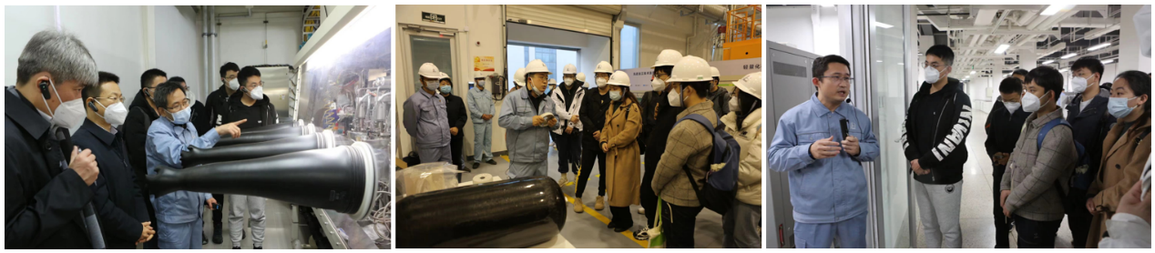 中石化北京化工研究院聚丙烯研究所所长周俊领、塑料加工研究所所长高达利和标准研究所所长杨化浩带领师生们依次参观了聚烯烃高通量技术中心、中国石化塑料技术中心和国家先进高分子材料测试评价平台。