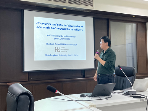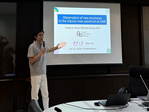朱拉隆功大学物理系主任查特拉蓬(Sojiphong Chatraphorn)为会议致开幕辞,研究员马妙钟(Chayanit Asawatangtrakuldee)主持研讨会。中泰两国学者通过8个学术报告,从四顶夸克测量、超越标准模型的希格斯粒子寻找、双夸克偶素产生截面测量、双J/ψ(粲偶素)衰变道观测到的新结构、全粲四夸克态的自旋宇称测量、机器学习在CMS DQM(数据质量监控系统)中的应用等方面,交流和探讨了近两年在CMS实验上取得的新进展。
