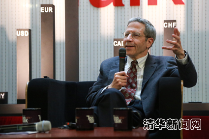 嘉宾交流过后,埃里克•马斯金发表了题为《如何在未知人们偏好的情况下做出正确的决策——对机制设计的介绍》(How to Make the Right Decisions without Knowing People’s Preferences:An Introduction to Mechanism Design)的主题演讲。为了使清华学子们充分了解“机制设计”的原理与内涵,埃里克•马斯金在演讲中以“妈妈如何给孩子平均分配蛋糕”和“无线电频段私有化”为例,深入浅出地介绍了设计者如何通过“机制设计”来实现目标利益的最大化。演讲最后,他结合中国的实际情况,以“机制设计”为基础,对如何解决“温室气体排放”问题和“金融系统监管”问题给出了新的思路与建议,并期望年轻的清华学子们在这一方面做进一步的尝试与探索。