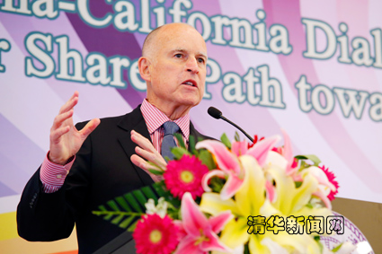 随后,布朗州长来到主楼接待厅,出席中美能源对话活动。国家发展和改革委员会副秘书长赵家荣出席对话会。来自加州IT、生化制药、旅游、清洁能源、创意文化等各界商业领袖及代表约100名嘉宾参加了活动。