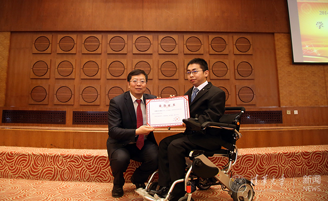 就这样,矣晓沅时常学习到凌晨1点,第二天照常6点半起床去上课。因此,矣晓沅的妈妈只好陪他上大学,充当他的“拐杖”。在不能用轮椅的地方,用身体支撑着儿子,帮他“行走”。就在这样艰难的学习条件下,矣晓沅的年级排名,从最初的90几名不断前进,大三到了第9名,而大四时,他拿到了特等奖学金,这是清华学生的最高荣誉。在本科生特奖答辩会上,晓沅说:“因为困难选择了我,所以我要选择坚强。”