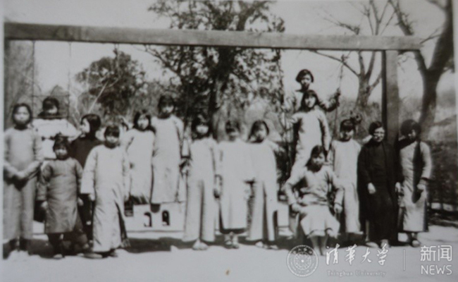 在校期间,她热心公益,是清华民众学校的教务主任、音乐老师。和民众学校师生合影的这张图中站在秋千最高处是吴瀚。