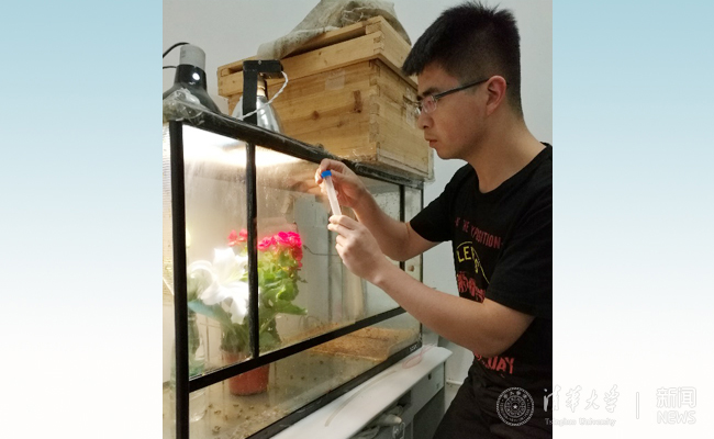 赵杰亮和他的师兄吴嘉宁,在研究蜜蜂腹部的时候,无意间发现了蜜蜂饮水的独特现象。为了探究蜜蜂饮水的机理,他们决定进一步做试验。可是想法容易,实践困难。如何将活体蜜蜂固定起来观测?如何给蜜蜂设计饮水装置?如何清晰拍摄出蜜蜂饮水的过程?为了解决这迎面而来的一个个难题,他们不停探索新方法,不断试验新方案。