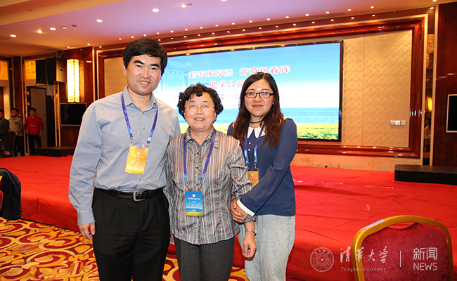 靳力、王晓英夫妇与校友总会副会长白永毅老师合影。