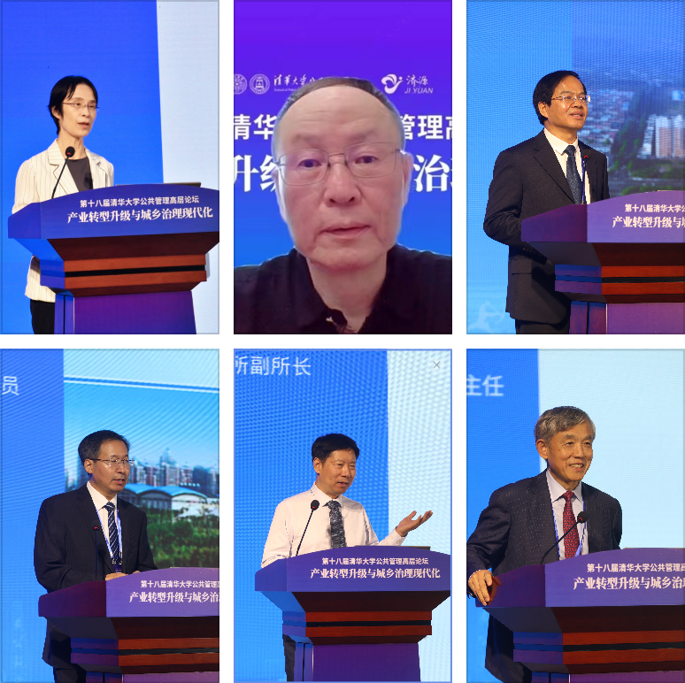 江小涓、王一鸣(线上)、庄建球、方创琳、张文魁、薛澜作主旨发言(从左至右,从上至下)