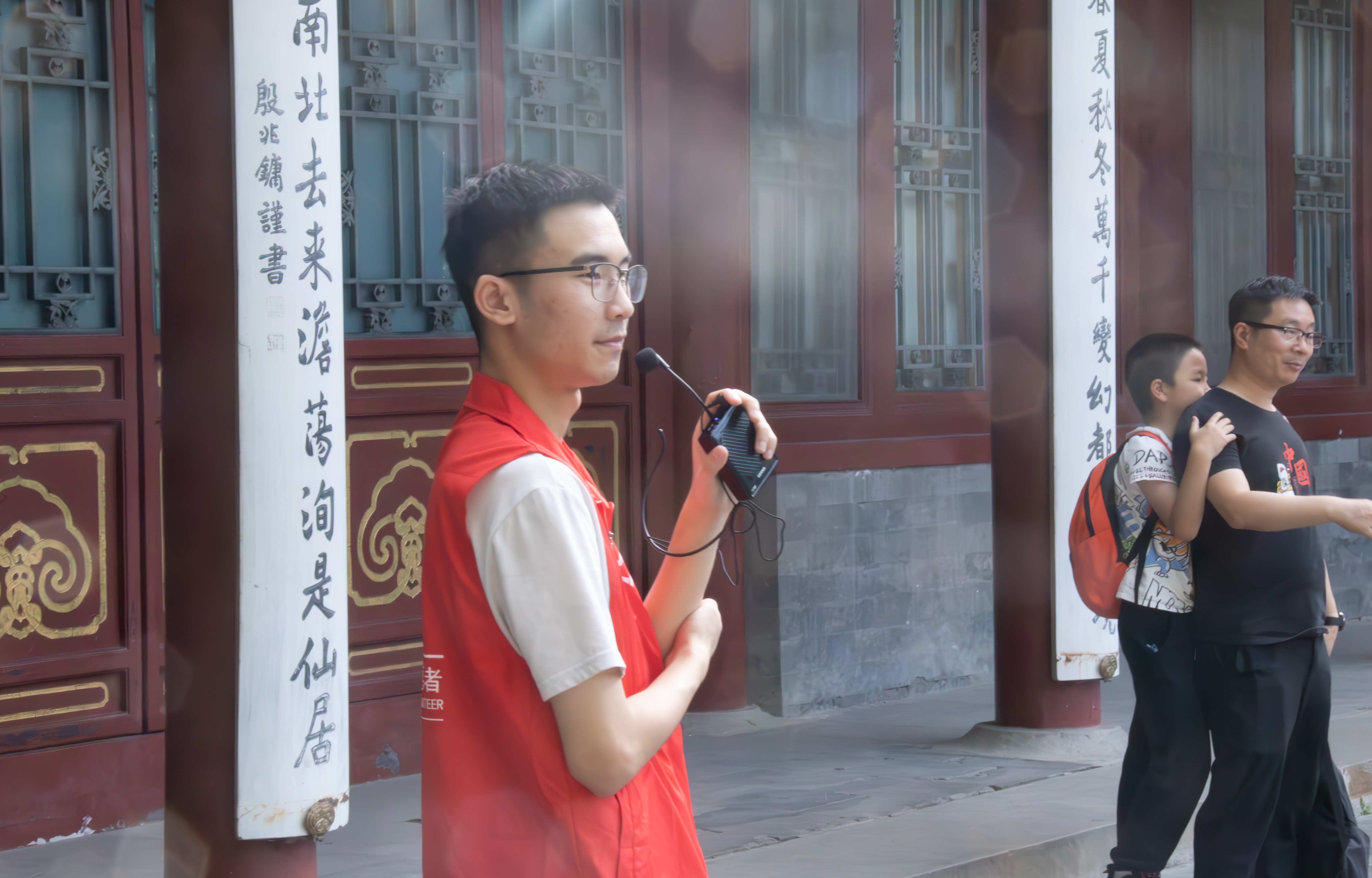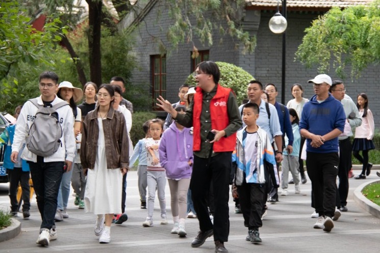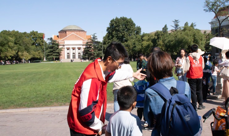 志愿者为游客讲解水木清华