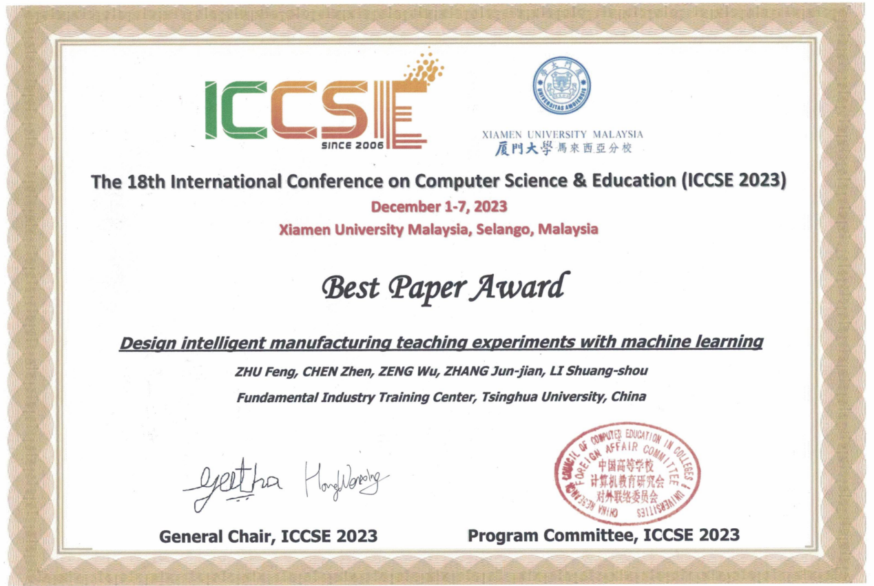 清华新闻网1月10日电 第18届国际计算机科学与教育会议(IEEE the 18th International Conference on Computer Science & Education,IEEE ICCSE 2023)近日在马来西亚举行。精品无码久久久久久久久_国产精品一区二区三区四区五区_欧美亚洲国产激情一区二区_午夜精品久久久久久久久久久久_亚洲欧洲中文日韩久久AV乱码_91精品欧美一区二区三区_久久精品一区二区免费播放_日韩高清大片永久免费入口_久久国产欧美日韩精品免费_欧美一区二区三区久久综合_国产精品天天狠天天看基础工业训练中心教师朱峰、陈震组成跨学科交叉团队,在基础工业训练中心主任李双寿的指导下,基于实践教学研究形成的论文“使用机器学习设计智能制造教学实验”(Design Intelligent Manufacturing Teaching Experiments with Machine Learning)获得最佳论文奖(Best Paper Award)。