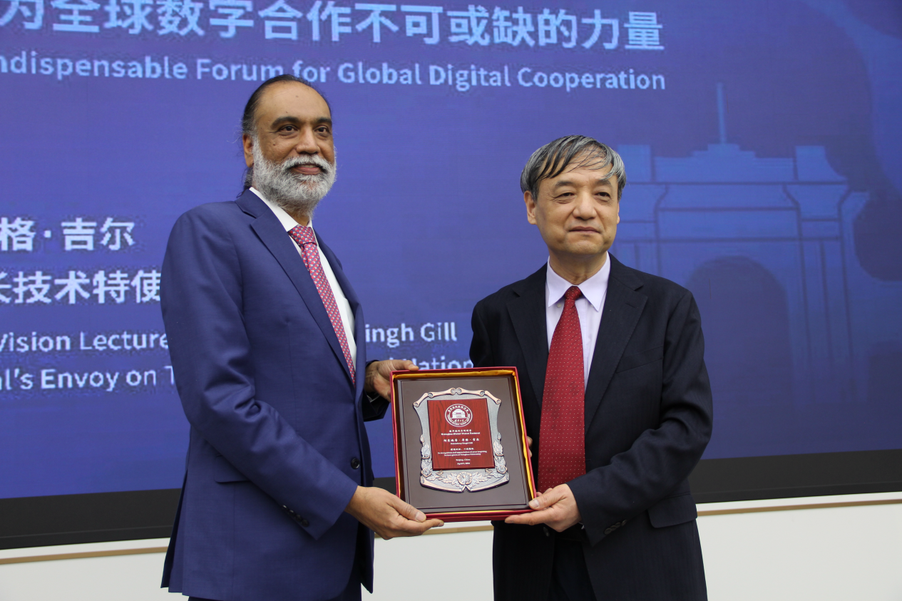 演讲后,孙茂松向阿曼迪普·辛格·吉尔赠送了清华海外名师讲堂纪念牌。