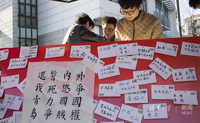 在各个展区中,同学们亲笔书写“五四”运动的历史标语和爱国宣言,在一站到底的激烈闯关中体会从1920年上海共产主义小组成立到党的十九大召开的峥嵘历史进程,通过掷红镖、唱红歌、穿红装的氛围中体验“一二·九”运动,亲手绘制两万五千里长征路线图,通过填字游戏的趣味方式回顾十四年抗战期间的点滴岁月,身体力行感受朱日和阅兵和国家军事力量的日益强大,在展区中央的主题画卷处利用手中的颜料为“百人齐创一幅画,青年共绘种花家”画卷涂色。此外,四系的部分同学在现场进行了《青春舞曲》快闪表演,得到同学们的热烈掌声。