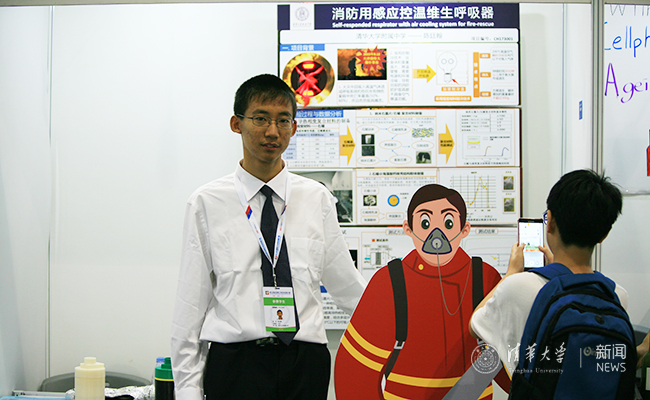 陈廷翰的参赛项目为消防用感应控温维生呼吸器。该项目在现有防毒面具基础上,研发出一种具有温度自感应启动、高效快速降低吸入气体温度、佩戴轻便等特点的消防用维生呼吸器,可以将200℃热气流持续快速转化为40℃以下的可呼吸空气,工作时间可达30分钟以上,且结构简单、佩戴轻便,可以大幅降低火灾造成的人身伤害和生命损失。