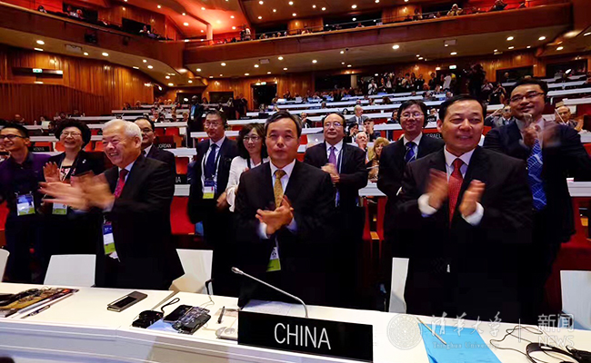 中国代表团庆祝申遗成功。