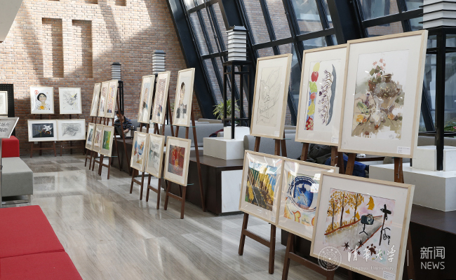 图书馆党委书记蒋耘中、参加本次展览的新雅书院(建筑学专业)2015级学生高菲也在开幕式上发言。蒋耘中祝福“新雅画派”走出清华、走向世界,高菲表达了同学们用手中的画笔创造美的欣喜。
