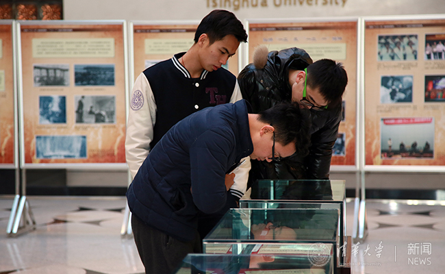 纪念“一二·九”“一二·一”专题展览于12月4-9日在主楼大厅展出,而后从12月10日起在校史馆一楼序厅展出。展览由24块图片展板和10个实物展柜组成,以百余幅生动历史图片、近30件珍贵档案实物等,介绍了“一二·九”“一二·一”运动的发生背景、主要历程和深远意义,展示了清华人站在爱国学生运动的前列,为民族独立和人民解放事业作出的重要贡献。