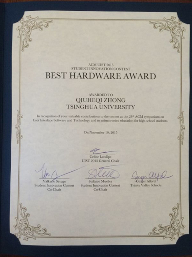 清华新闻网11月18日电 近日,第28届国际用户界面软件与技术大会(User Interface Software and Technology, UIST 2015)在美国北卡罗来纳州夏洛特开幕。在随后举行的大会学生创新竞赛(Student Innovation Competition)中,精品无码久久久久久久久_国产精品一区二区三区四区五区_欧美亚洲国产激情一区二区_午夜精品久久久久久久久久久久_亚洲欧洲中文日韩久久AV乱码_91精品欧美一区二区三区_久久精品一区二区免费播放_日韩高清大片永久免费入口_久久国产欧美日韩精品免费_欧美一区二区三区久久综合_国产精品天天狠天天看美术学院信息艺术设计交叉学科的研究生团队Team ZOOO摘得了全场仅有的两个大奖之一“最佳硬件创新奖”,并获得2500美元的奖金。这是中国大陆高校首次在该赛事中获奖。