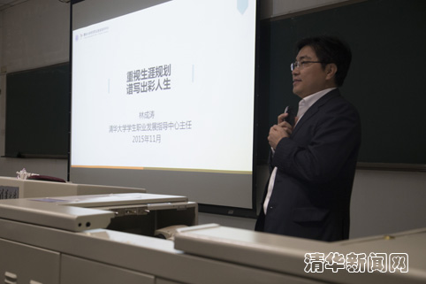 首先,林成涛结合当下就业形势与往届毕业生就业情况,分析了不同类型与不同行业用人单位对人才的多样化需求,回答了清华学生应如何进行职业发展规划的问题。“生涯规划起源于对自我的了解,在经历对职场的深入了解和实际体验后,才能做出方向性决定,然后通过提升技能最终确定自身的职业生涯。这是一个长时间又多环节的过程,不可能一蹴而就。而在这其中,全面且深刻的自我认知是最根本的环节。”