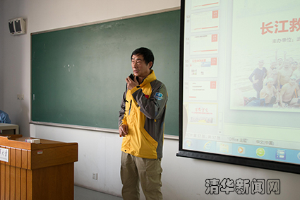 交流会上,长江救援志愿队队长俞关荣等5名成员和志愿者们分享了长江救援经历。活动首先通过一个短片帮助同学们认识并了解了这支队伍:2010年,武汉三镇22支民间冬泳队自发组建长江救援志愿队。他们分工协作,值守两江险段,不畏艰险,入水救人,仅2014年,他们就挽救了200多名落水者,大大降低了两江地区的溺亡率。