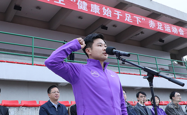 体育部教师王壹伦和车辆学院机械911班邱智林同学分别代表裁判员和运动员进行宣誓。8时40分,史宗恺宣布运动会开幕。