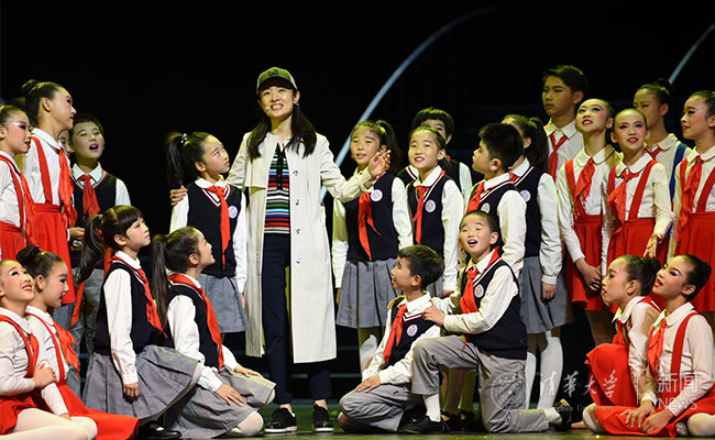 在国家大剧院,戏剧团的同学们与著名主持人周涛用戏剧的形式重现宋庆龄的故事《共产主义接班人》。