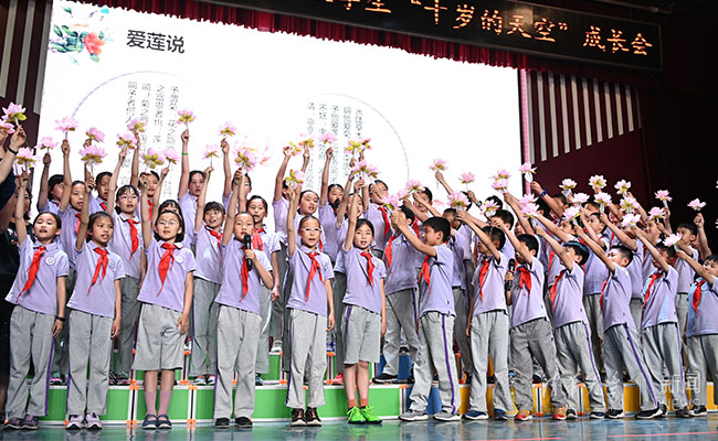 在一年级举行的“启程入队180天,争做成志好队员”入队仪式上,同学们了解了少先队的光荣历史,立志为中华民族伟大复兴努力学习。从此,他们有了一个共同的响亮的名字——“红领巾”。
