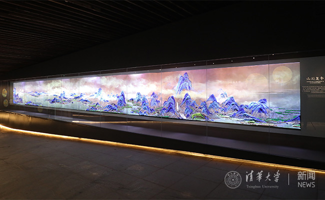 “四时景和”展厅以宋代著名青绿山水长卷《千里江山图》为主题,以永生苔藓作为绘画材料再现经典画卷,并结合科技手段对其进行动态光影演绎,配以唐宋诗词作解,描绘了山水相合,人居草木间,人与自然的良性互动,凸显 “绿水青山就是金山银山”绿色发展观的文化源流。
