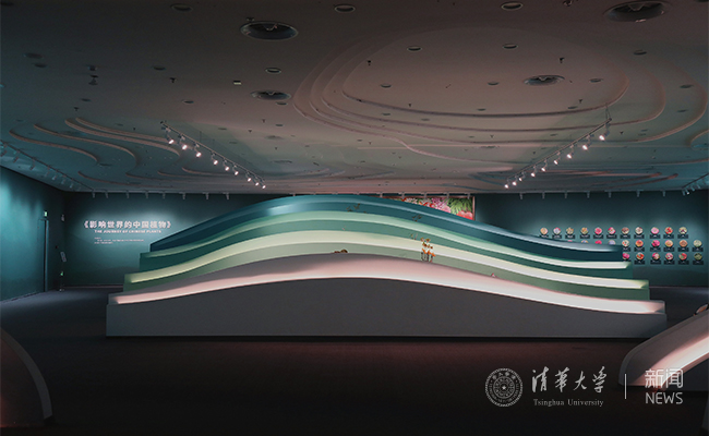 “山水和鸣”厅设计语言充分结合圆形下沉水院建筑空间特点,与外部景观相呼应,与自然共享天地,和谐统一。一侧“水院”重点展示中国园艺发展史上24件里程碑意义的重大事件和成果,另一侧“山厅”则介绍中国特有的珍稀植物,并展示《影响世界的中国植物》专题画作,整个布局形成富有意趣的山水空间,昭示山水林田湖草万物共生的生态整体观。