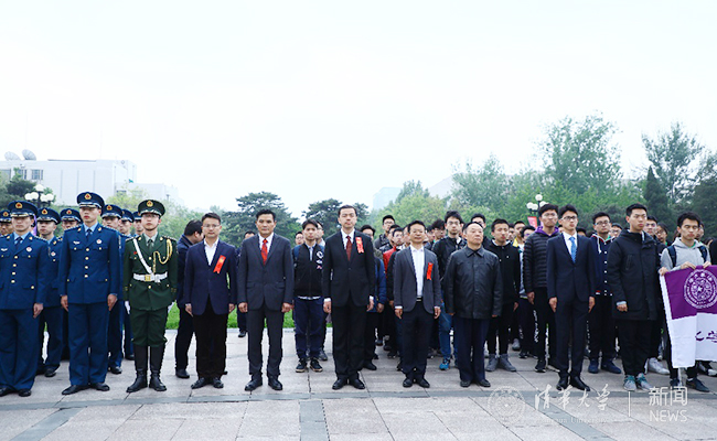 七点整,随着嘹亮的口令,升旗仪式正式开始。伴着铿锵的正步,仪仗队员们护送着国旗向旗台走去。随后,雄壮的国歌在主楼广场前响起,回荡的国歌声中寄托了师生及校友们对祖国的深情。五星红旗在主楼上空迎风飘扬,是对清华108岁生日的祝贺,也是为祖国70周年华诞的献礼。