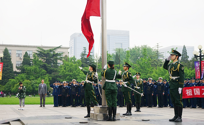 清晨六点四十分 ,飞行学员及化工系八字班同学便早早来到主楼前,静立等候仪仗队出旗。