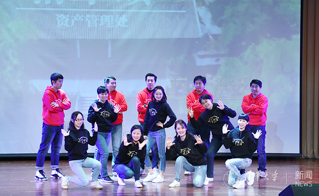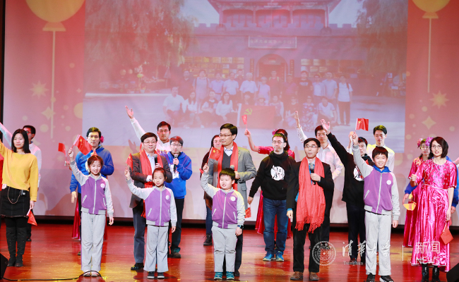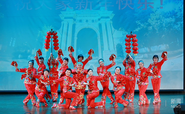 伴随着离退休教职工的优美舞蹈《天地喜洋洋》,2019年校机关迎新春晚会拉开了帷幕。整场晚会包括“育人初心”“创新无限”“脉脉相承”和“走向世界”四个篇章,校机关各部处工作人员和离退休老同志们相继带来精心编排的19个节目。