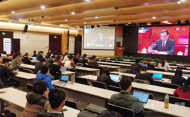这一天的清华园里,各院系、各部处都分别组织教职工和学生收看、收听了开幕会直播,一些出差在外的师生们,也都通过电脑或者是手机自发地收看收听大会直播。