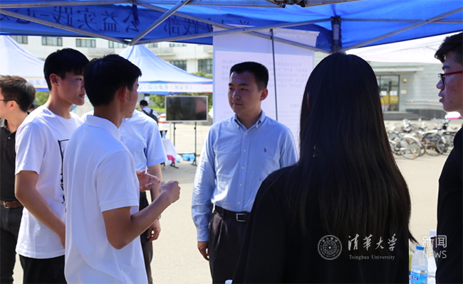 校团委书记邴浩与“心之桥”公益类社会实践项目的同学交流