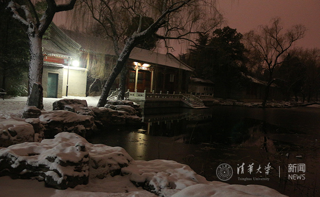 清华新闻网2月23日电  “白雪却嫌春色晚,故穿庭树作飞花”。赶在冬日的尾巴,抢在新学期的伊始,一小会儿午睡的功夫,再拉开窗帘,春雪已悄然而至,给静谧的午后增添了一丝洁白,好一个银装素裹的清华园!