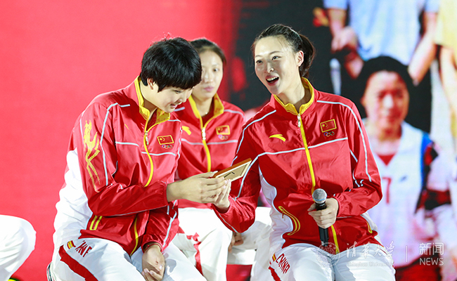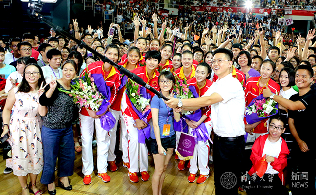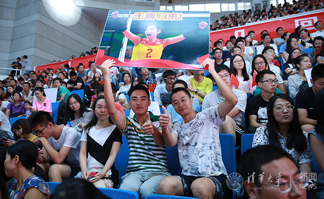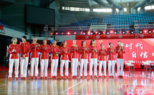 清华新闻网9月6日电 (张宇 苑洁 杨艳宾 9月5日下午,“自强时代,自信中国——中国女排清华行”活动在综合体育馆举行。从里约奥运会载誉而归的12名中国女排队员亮相清华园,走进清华最美丽的季节,与师生近距离交流互动。