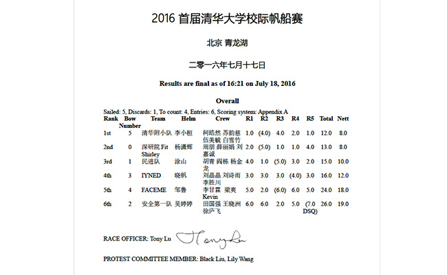 风力微弱、天气闷热,加之新晋船长晕头转向,都没有减少比赛带来的快乐。经过5场角逐,清华附小队勇夺冠军,清华深研院队紧随其后,民进队获得季军。比赛过程精彩不断,甚至状况频出,每个环节都体现着清华人永不言败的顽强个性和追求坚强与奋进的体育精神。