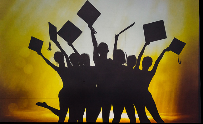 最后,全场毕业生眼含泪光,高声齐唱校歌,历时3个小时的晚会落下帷幕。