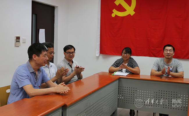 化学系无机所支部大会一致通过彭卿教授(左一)转正决议。