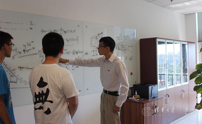 电子系新党员沈渊副教授(右一)与学生在讨论问题。